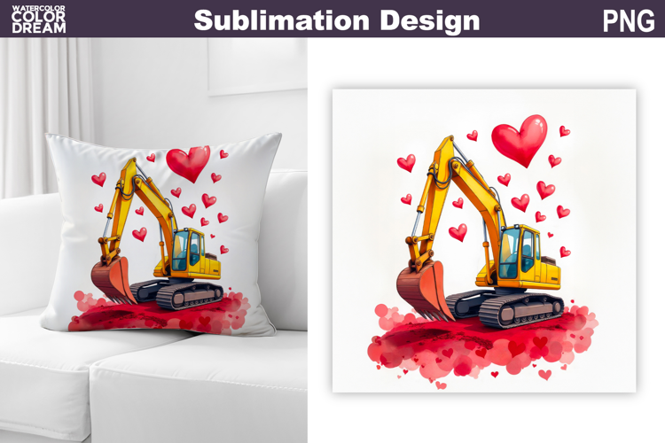 Valentine Excavator Sublimation | Construction Truck Pillow example image 1