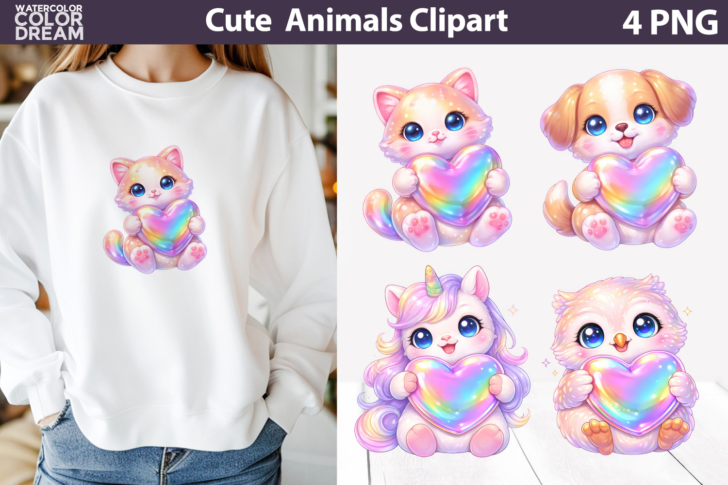 Cute Animals Clipart | Baby Animals Heart Sublimation | Pastel Animals Clipart