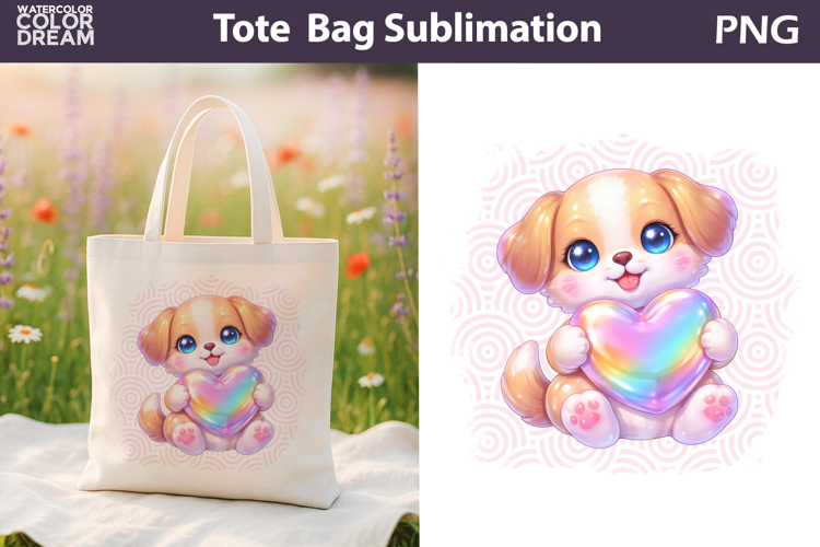 Cute Dog Tote Bag | Baby Animal Sublimation example image 1