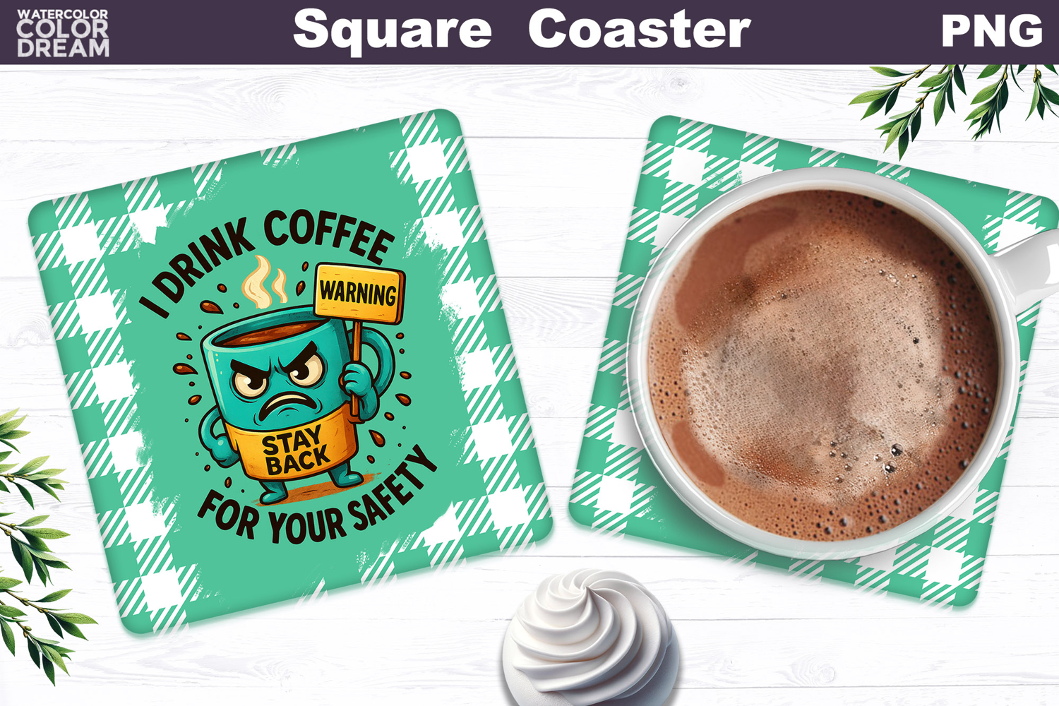 Funny Coffee Square Coaster | Coffee Quote Sublimation