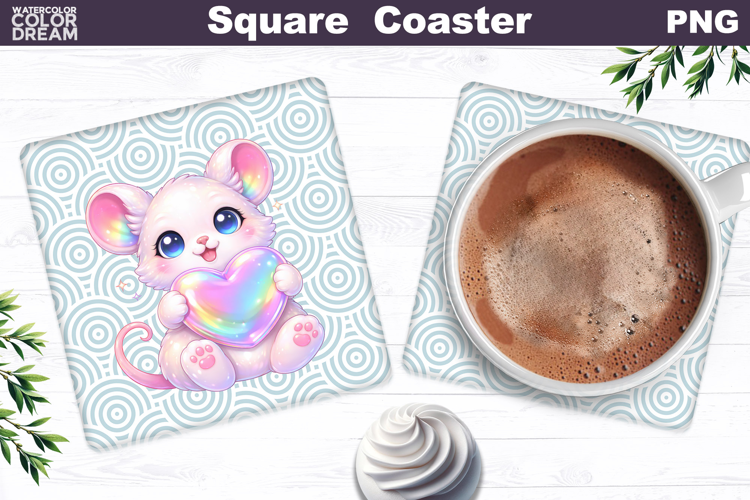 Mouse Square Coaster Mouse Sublimation Valentine Coaster Cute Animal Valentine Valentines Day Square Coaster Mothers Day Coaster Cute Animal Square Coaster Cute Mouse Heart Animal Heart Square Coaster