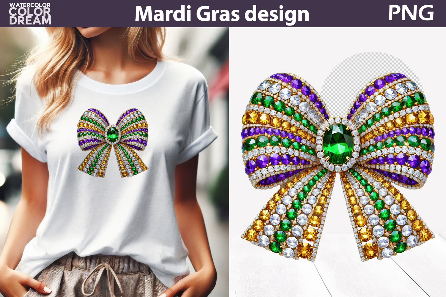 Mardi Gras Sublimation | Mardi Gras Bow example image 1