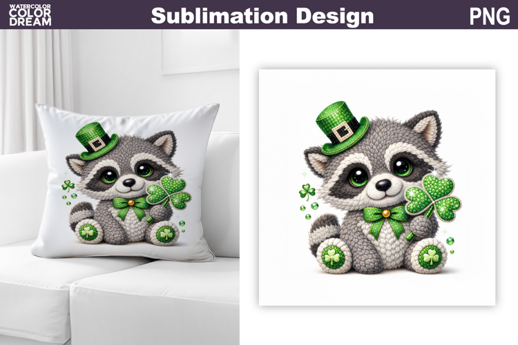 Pillow Raccoon St Pattys Day St Patrics Day Pillow Sublimation St Patrics Sublimation St Patrics Pillow Design Animal St Patric's Day Pillow Design Cute Raccoon Clover St Patrics Raccoon Clover