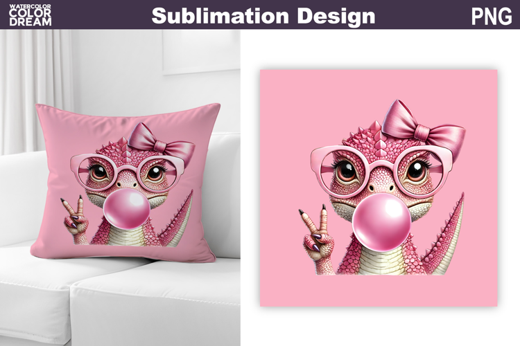 Valentine Pillow Design | Cute Dinosaur Sublimation example image 1