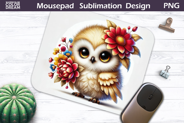 Cute Bird Floral Mousepad | Funny Owl Sublimation example image 1