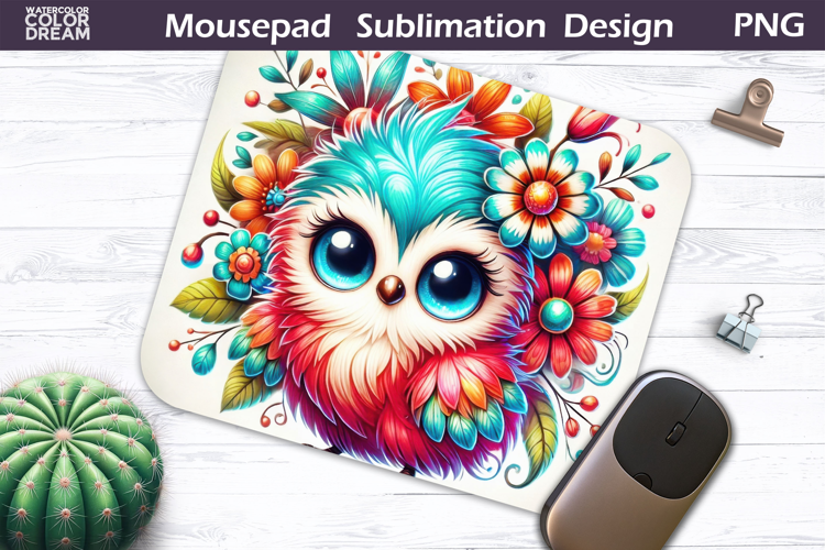 Cute Bird Floral Mousepad | Funny Owl Sublimation example image 1