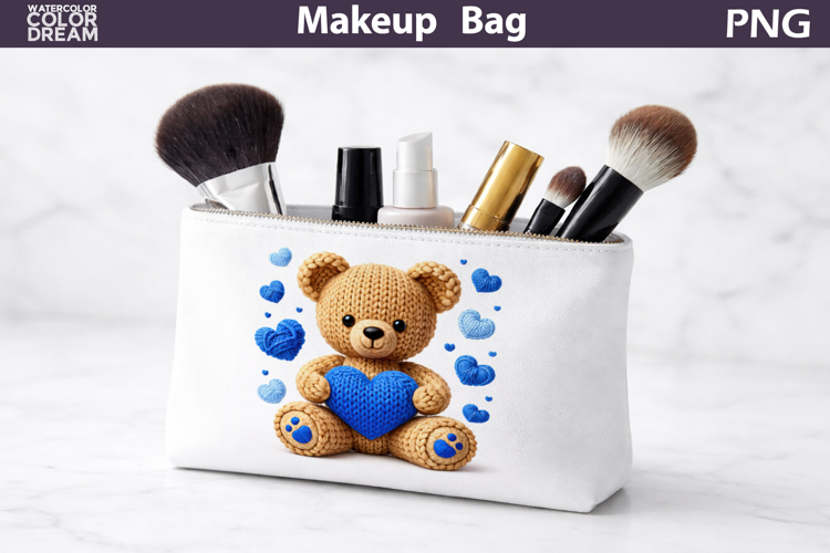 Makeup Bag Sublimation | Valentine Bear Heart Sublimation