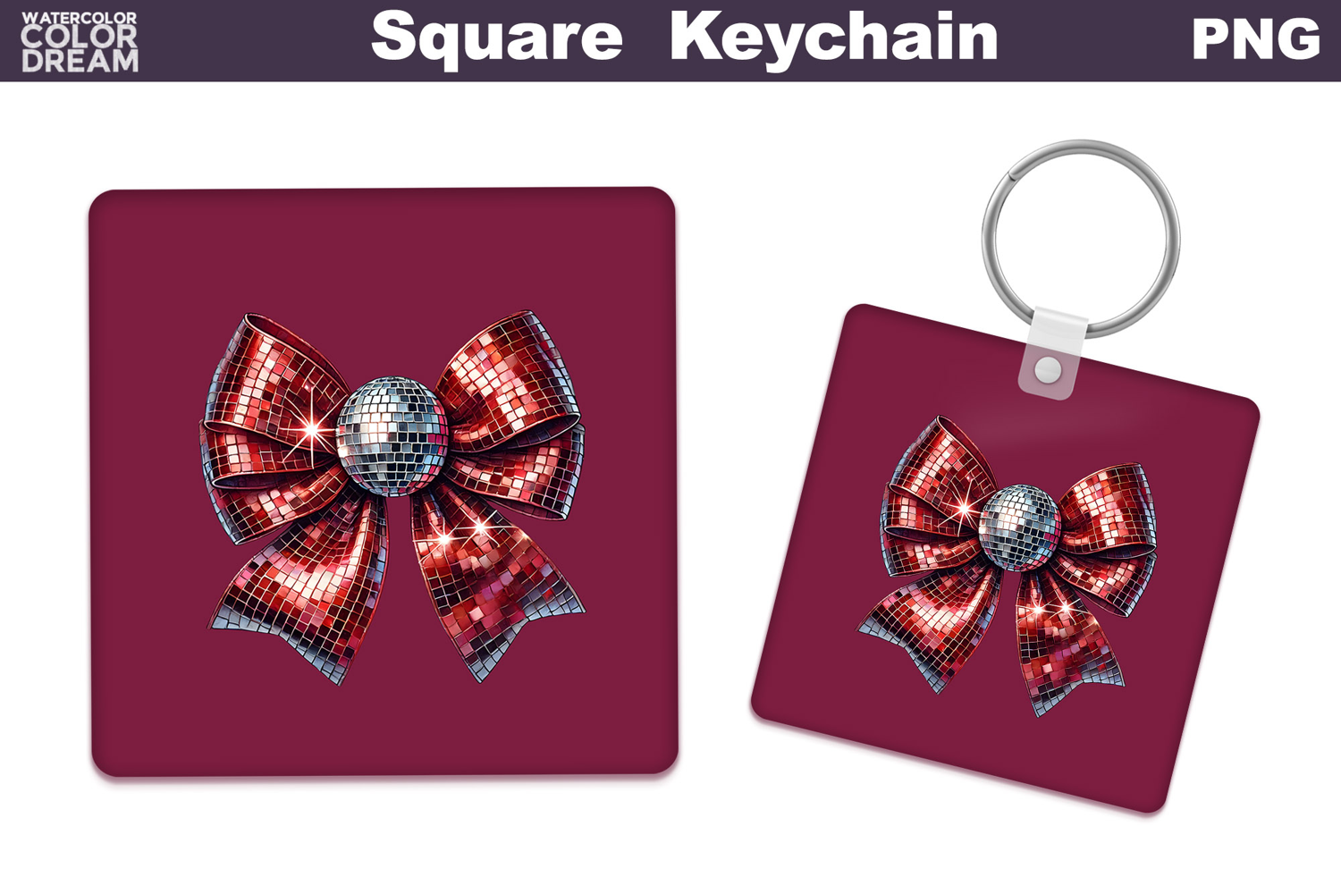 Valentine Bow Square Keychain | Sequins Red Bow Sublimation example image 1
