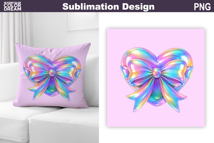 Pillow Mothers Day Happy Valentines Day Valentine Sublimation Valentine Pillow Valentine Pillow Sublimation Mothers Day Pillow Sublimation Valentines Day Card Poster Print Illustration Iridescent Valentine Heart Bow Love Valentine