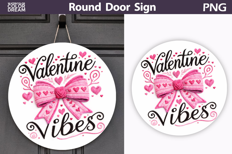 Valentine Round Sign | Valentine Bow Sublimation example image 1