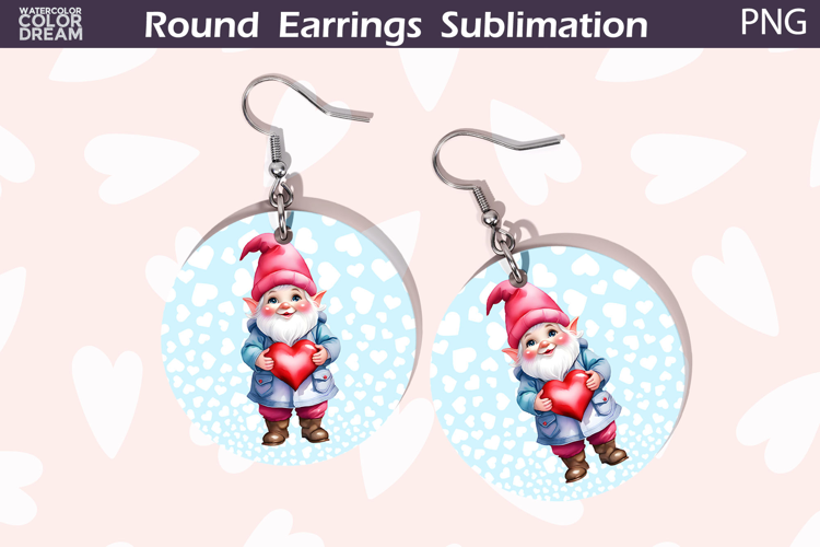 Similar Design Products to Gnome Heart Round Earrings | Valentine Earrings Sublimation