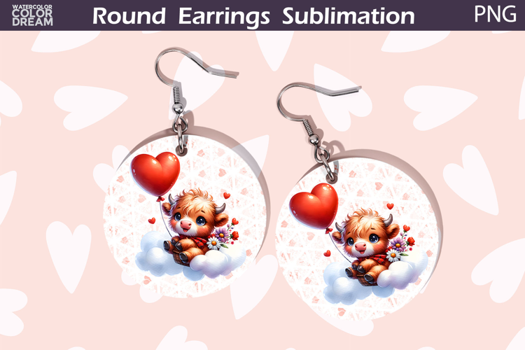 Highland Cow Heart Round Earrings | Valentine Earrings Sublimation
