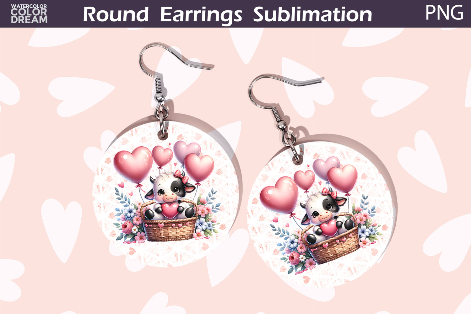 Cow Heart Round Earrings | Valentine Earrings Sublimation