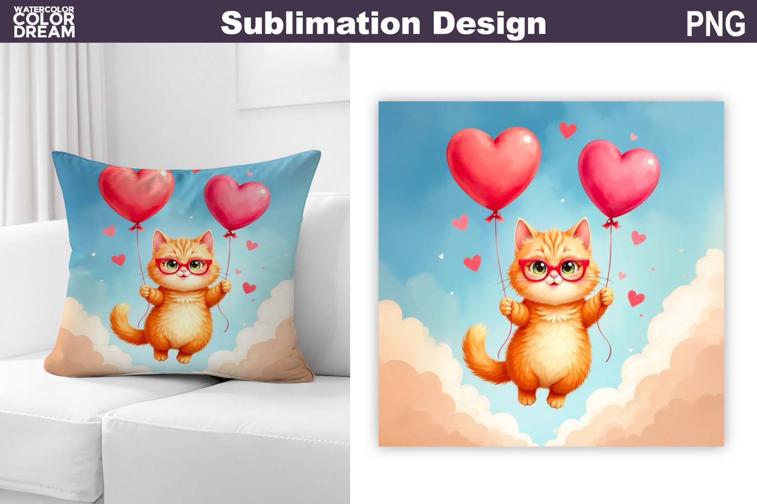 Valentine Cat Pillow Design | Valentines Day Sublimation example image 1