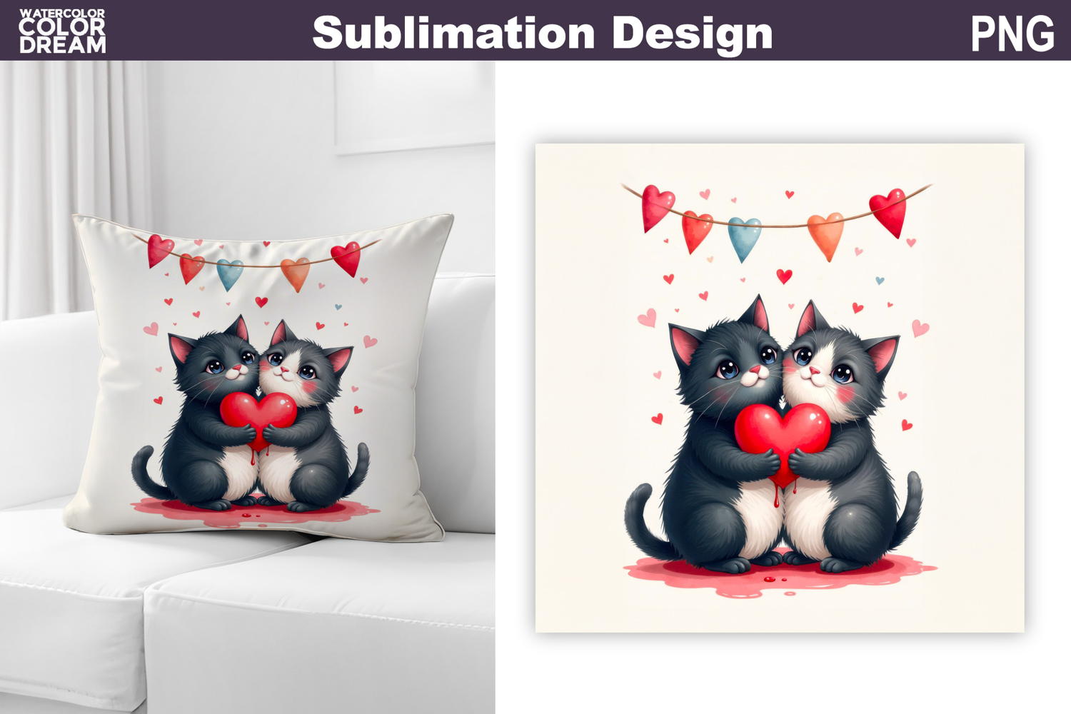 Valentine Couple Cats Pillow Design | Valentines Day Sublimation