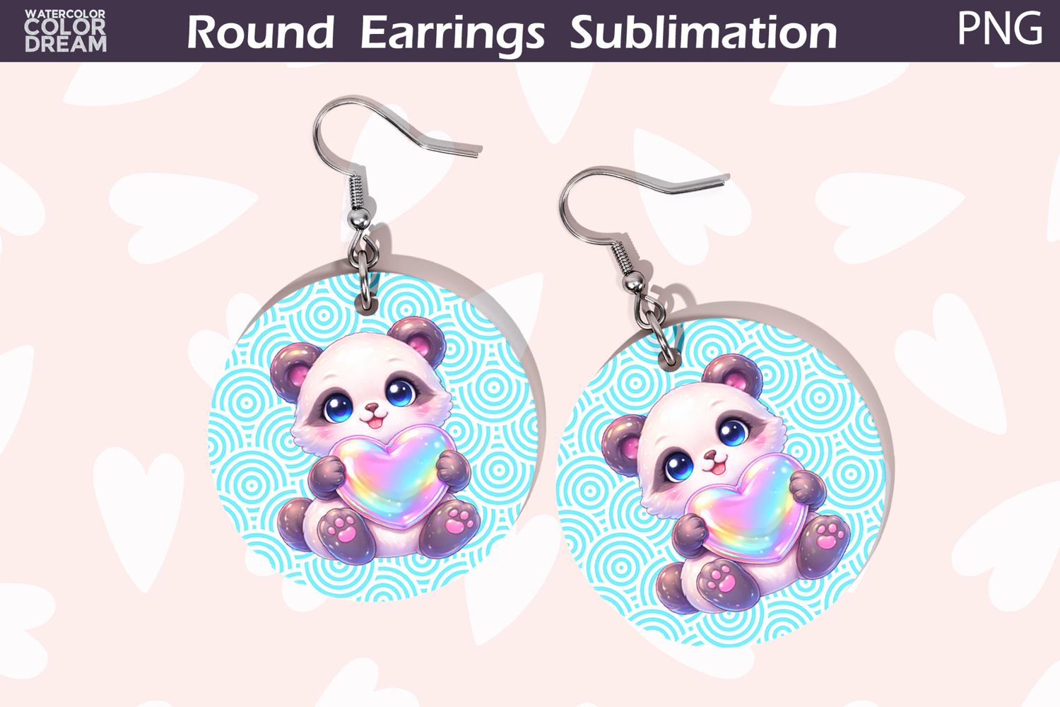 Panda Heart Round Earrings | Cute Animal Earrings Sublimatio example image 1