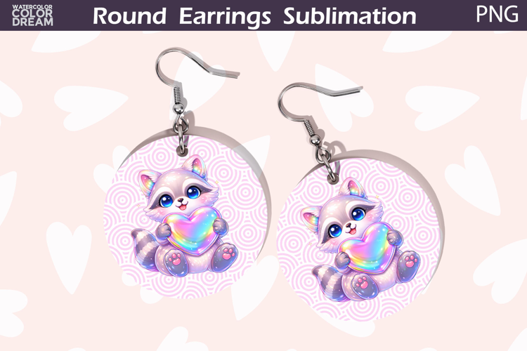 Raccoon Heart Round Earrings | Cute Animal Earrings Sublimation