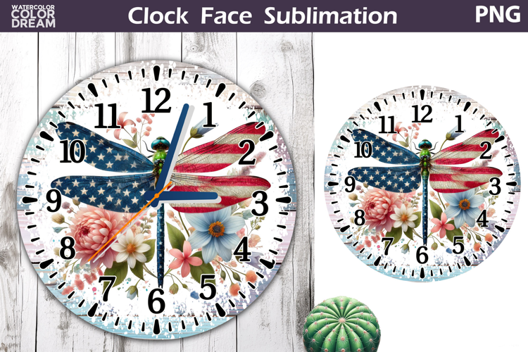 Patriotic 4th Of July Clock Face Patriotic Sublimation Clock Sublimation Clock Face Sublimation Patriotic Clock Face Sublimation 4th Of July Clock Design American Flag Clock Patriotic Dragonfly Floral Clock Face
