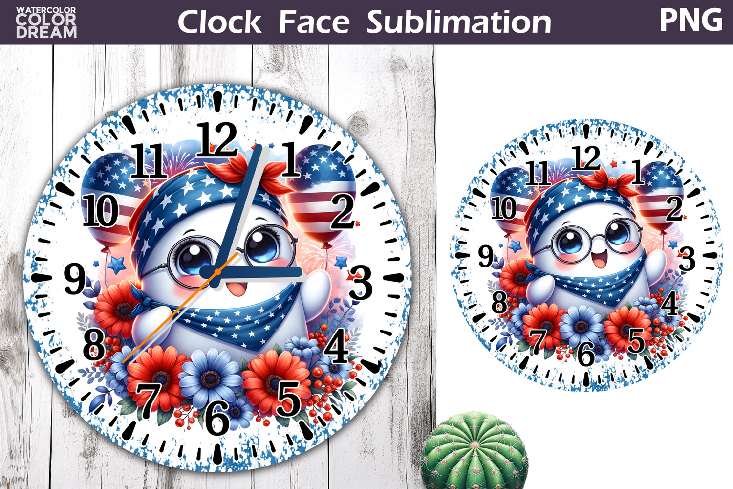 Patriotic Clock Face Sublimation | 4th of July Clock Design example image 1