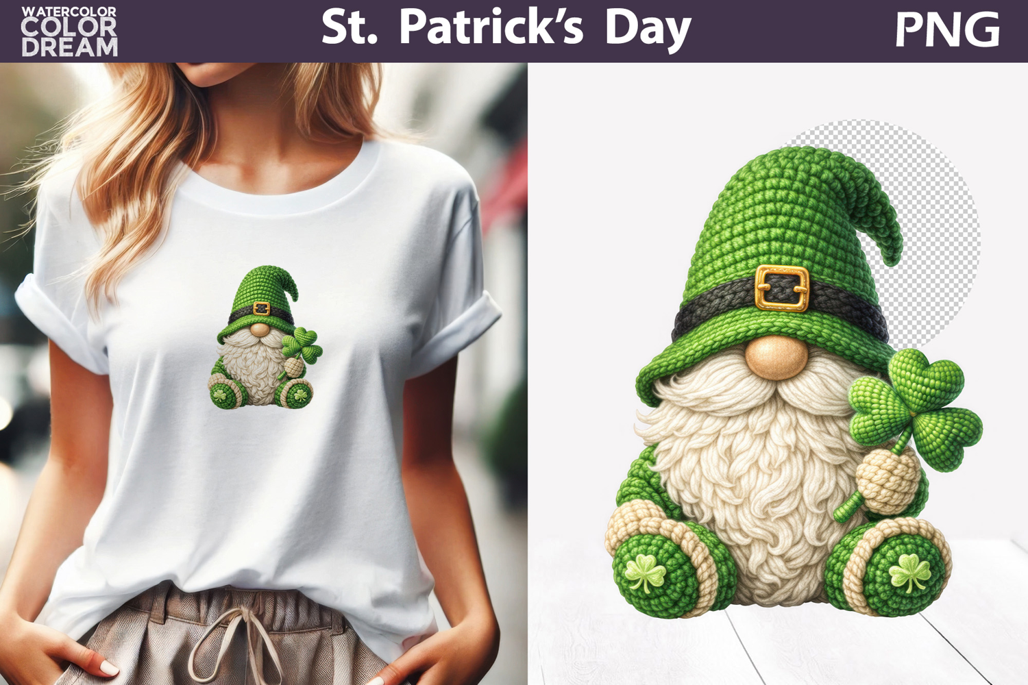 St. Patrick's Day Clipart | Crochet Gnome Clover Sublimation example image 1