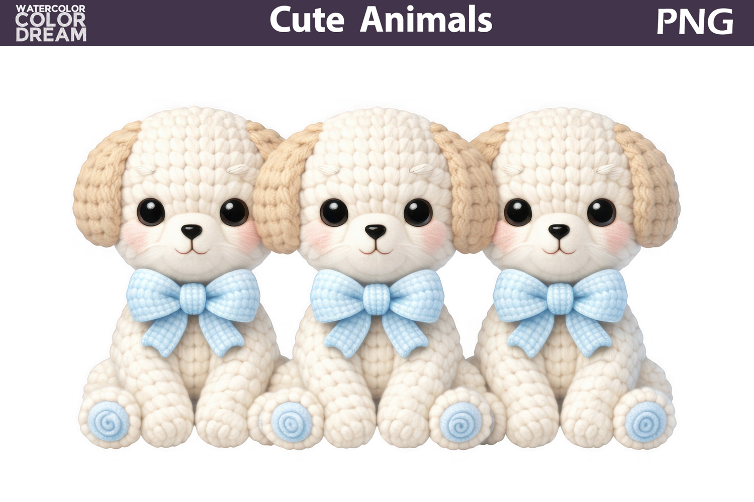 Dog Baby Dog Clipart Cute Dog Clipart Puppy Sublimation Cute Animal Sublimation Easter Dog Clipart Cute Crochet Dog Crochet Puppy Clipart Three Dog Dog Blue Bow