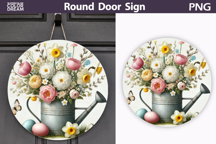 Spring Floral Round Door Sign | Easter Round Sublimation example image 1