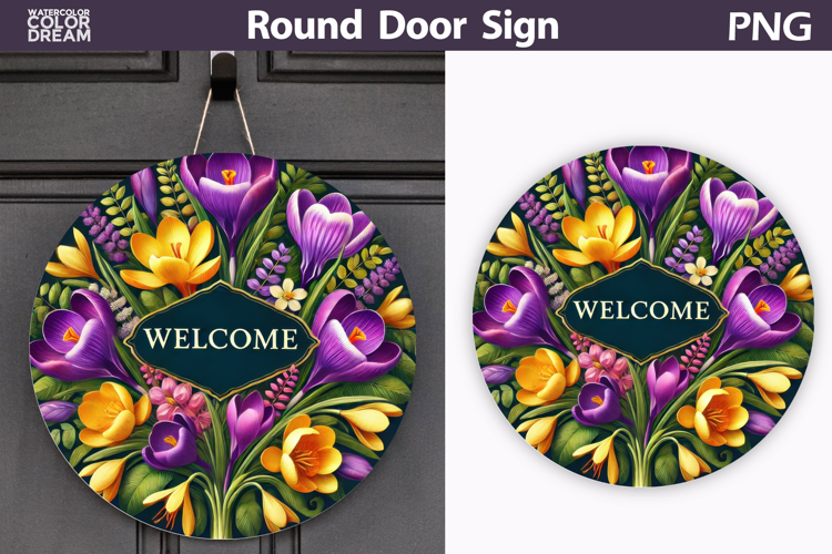 Crocus Add Your Text Round Door Sign Round Door Hanger Spring Round Sign Mothers Day Round Sign Spring Floral Round Sign Easter Round Hanger Crocus Round Sign Crocus Round Sublimation