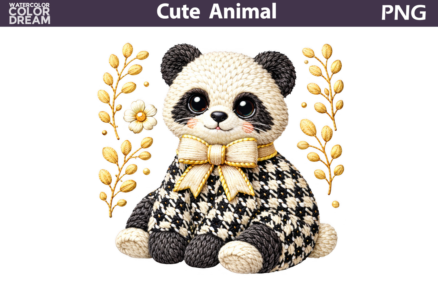 Panda Floral Clipart | Buffalo Animal Bow Sublimation