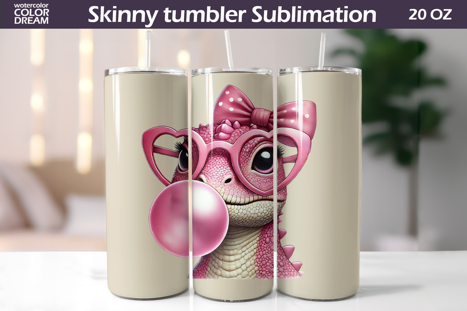Dinosaur Glasses Tumbler Wrap | Dino Bubble Gum Tumbler