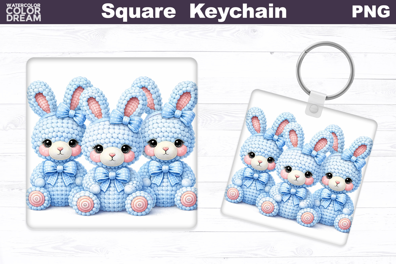 Bunny Easter Sublimation Bunny Sublimation Spring Rabbit Sublimation Cute Bunny Keychain Bunny Blue Bow Easter Bunny Square Keychain Easter Bunny Square Coaster Keychain Magnet Spring Rabbit Bow Easter Kids Keychain