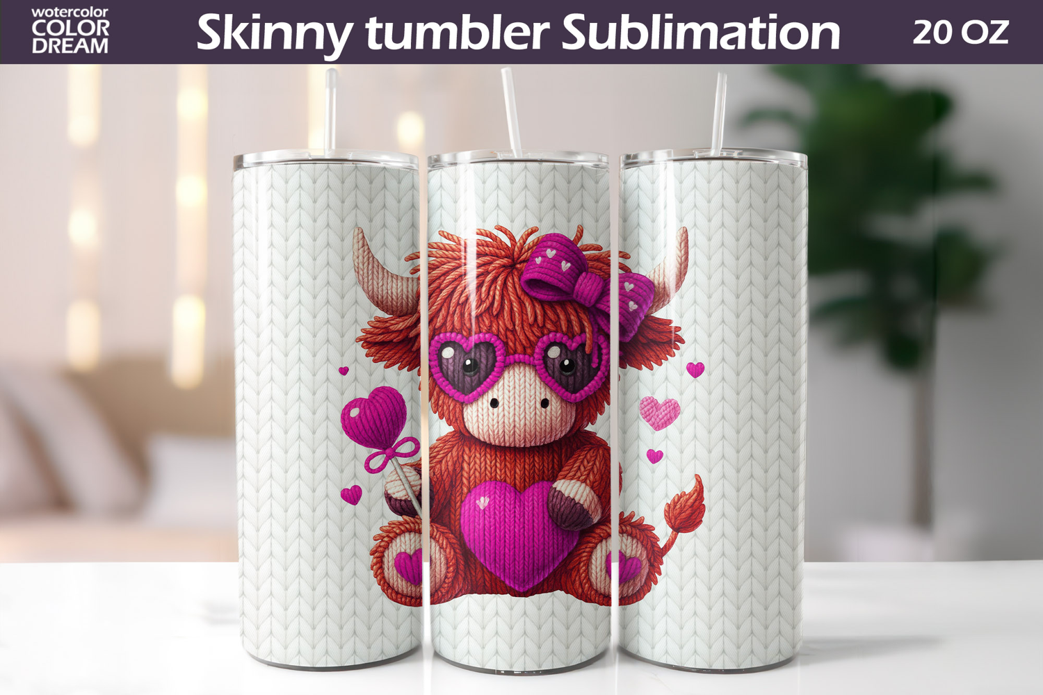 Tumbler Highland Cow Valentines Day Tumbler Valentine Tumbler Love Tumbler Highland Cow Tumbler Highland Cow Valentines Day Tumbler Highland Cow Heart Tumbler Wrap Cute Highland Cow Heart Tumbler Wrap Knitted Highland Cow Tumbler