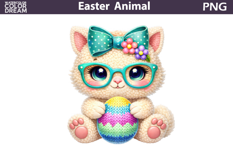 Baby Animal Easter Clipart | Cat Glasses Egg Sublimation