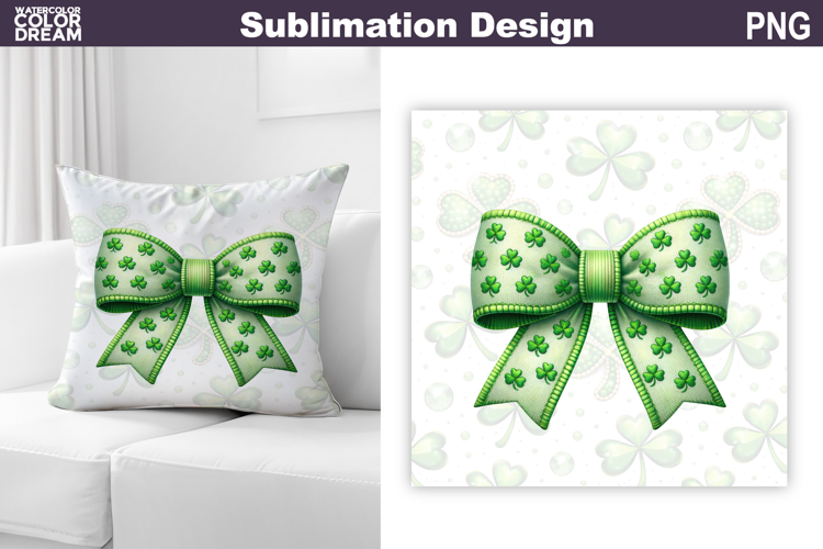 St. Patrick's Day Pillow Design | Bow Clover Sublimation example image 1