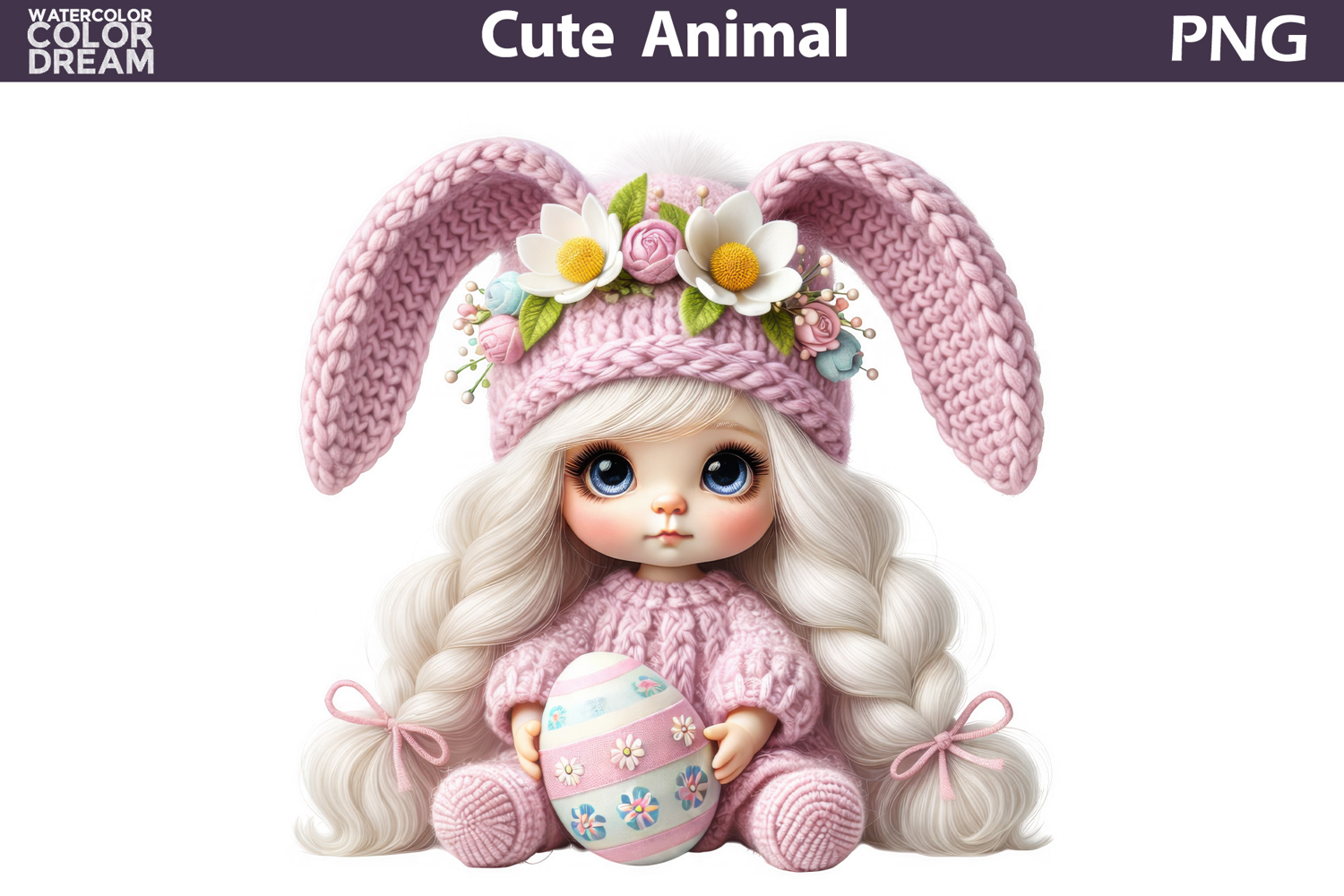 Baby Girl Easter Clipart | Bunny Ears Eggs Sublimation
