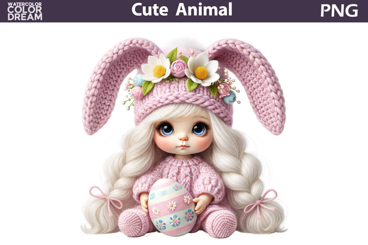 Baby Girl Easter Clipart | Bunny Ears Eggs Sublimation example image 1