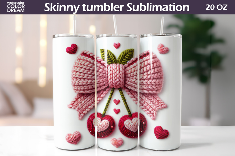 Pink Bow Tumbler Valentines Day Tumbler Valentine Tumbler Cherry Bow Sublimation Pink Bow Heart Tumbler Pink Bow Valentine Day Cherry Pink Bow Tumbler Cherry Valentines Day Sublimation Knitted Pink Bow Cherry Tumbler Wrap