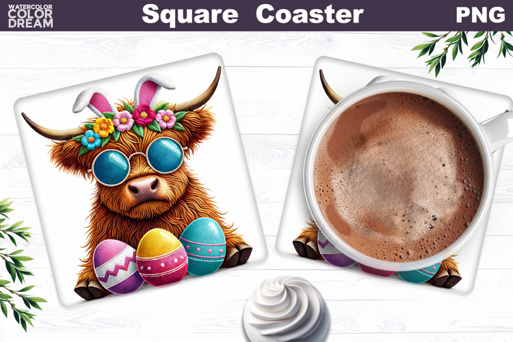Similar Design Products to Highland Cow Square Coaster | Easter Sublimation