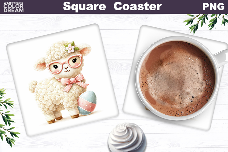 Cute Lamb Egg Square Coaster | Easter Sublimation example image 1