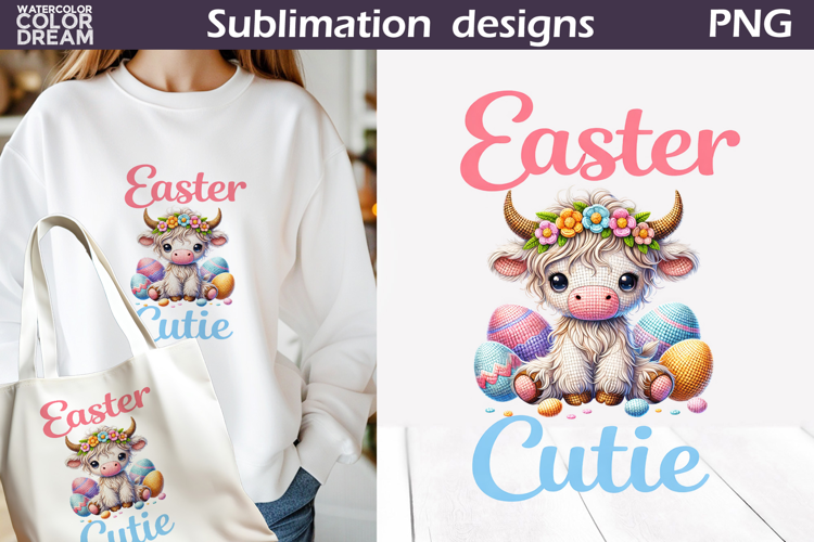 Easter Cow Easter Quote Easter Cutie Spring Animal Cow Easter Sublimation Easter T Shirt Tote Bag Mug Print Sublimation Cute Animals Easter Sublimation Crochet Latch Hook Easter Animals Cute Baby Cow Bow Egg