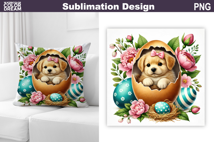 Cute Puppy Pillow Design | Easter Baby Animal Sublimation example image 1