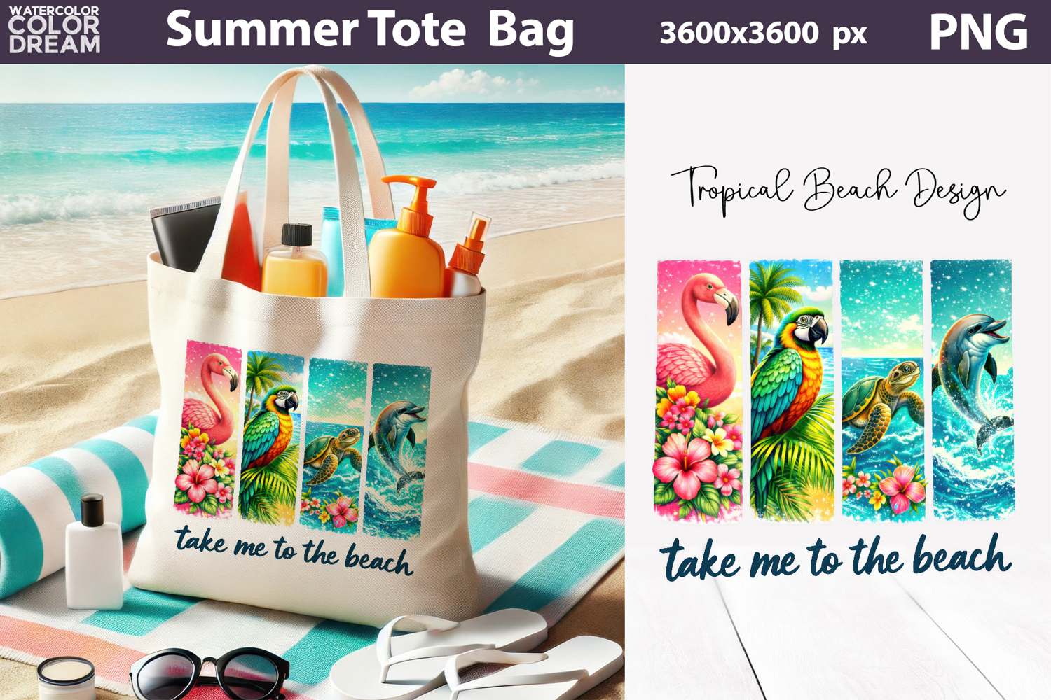 Flamingo Tote Bag Take Me To The Beach Summer Sublimation Beach Sublimation Tropical Beach Sublimation Tropical Beach Summer Brush Stroke Tote Bag Summer Tropical Beach Tropical Animals Brush Stroke Flamingo Sea Turtle Parrot Dolphin