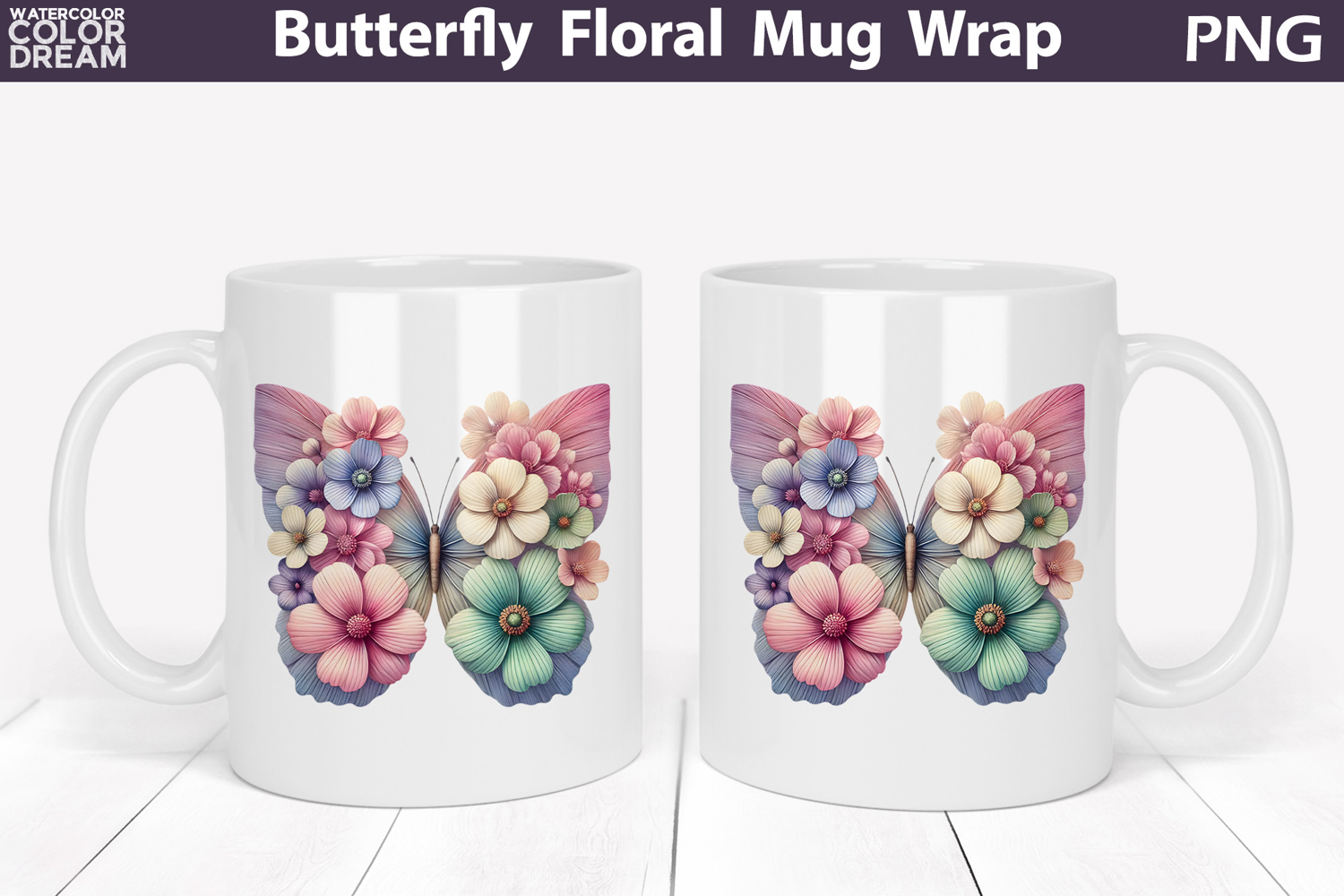 Butterfly Floral Mug Wrap | Spring Flowers Mug Sublimation example image 1