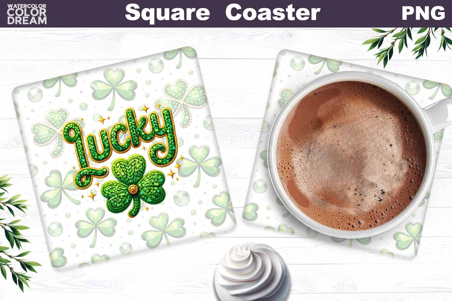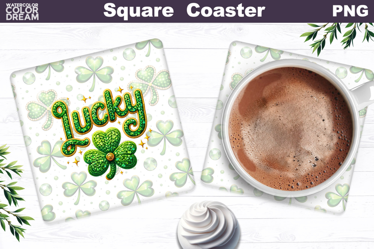 Lucky Clover Square Coaster | St. Patrick's Day Sublimation example image 1