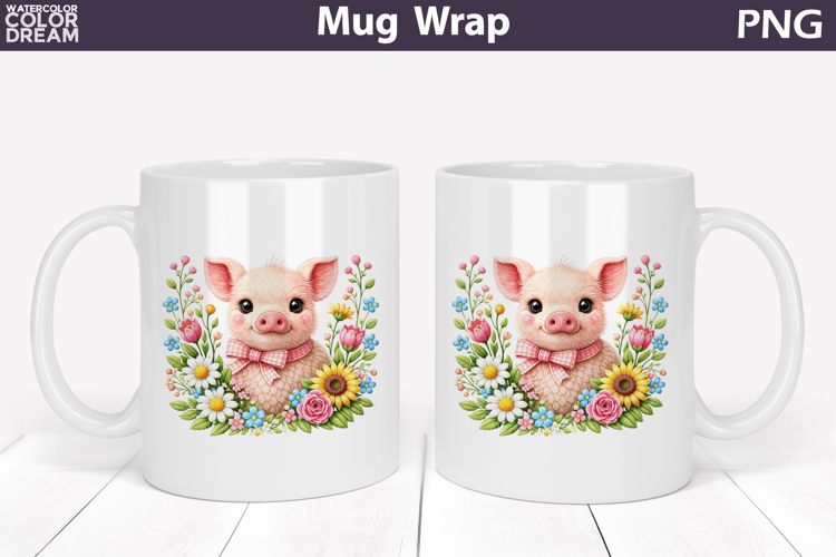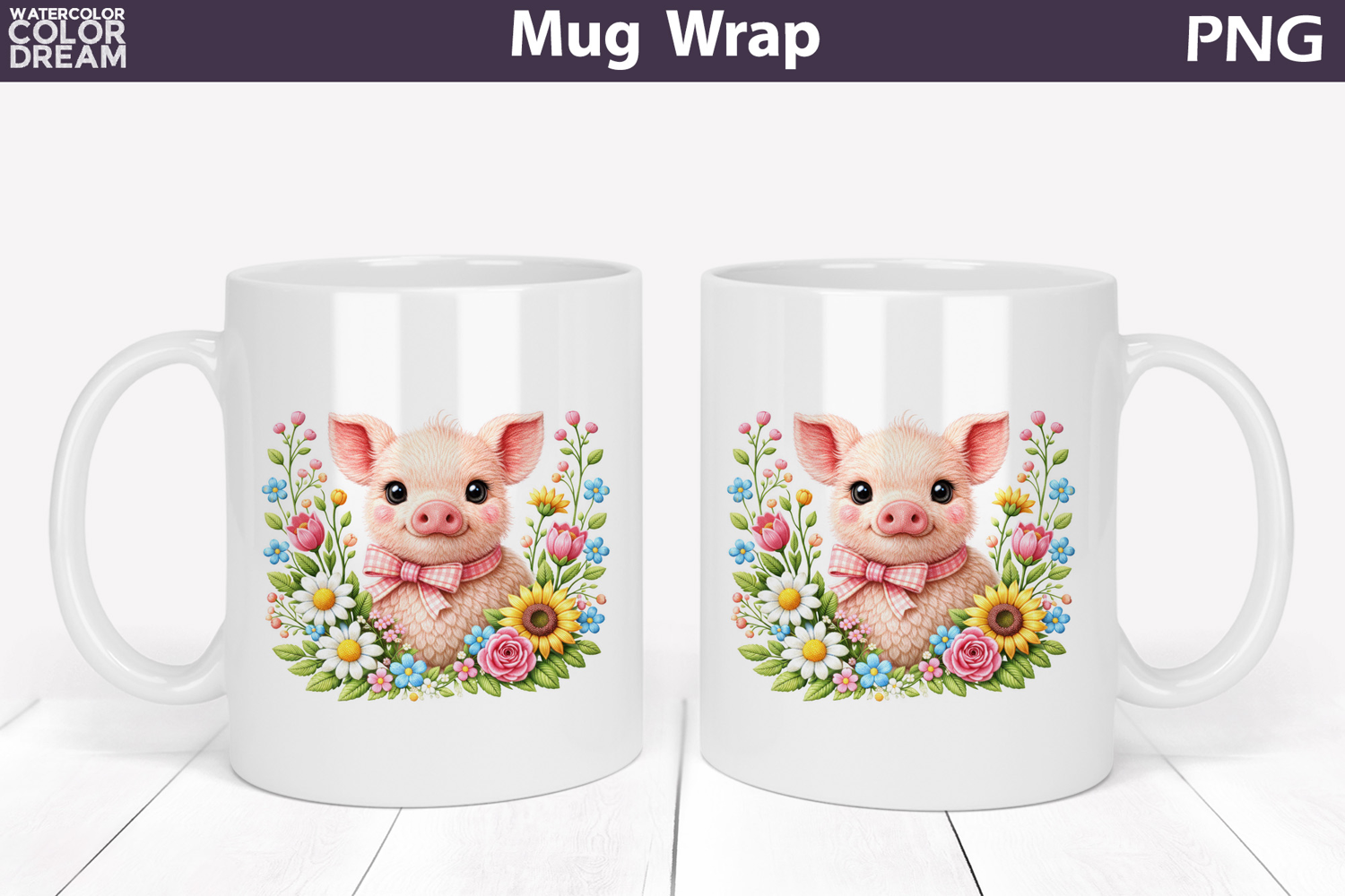 Similar Design Products to Pig Floral Mug Wrap | Spring Animal Mug Sublimation