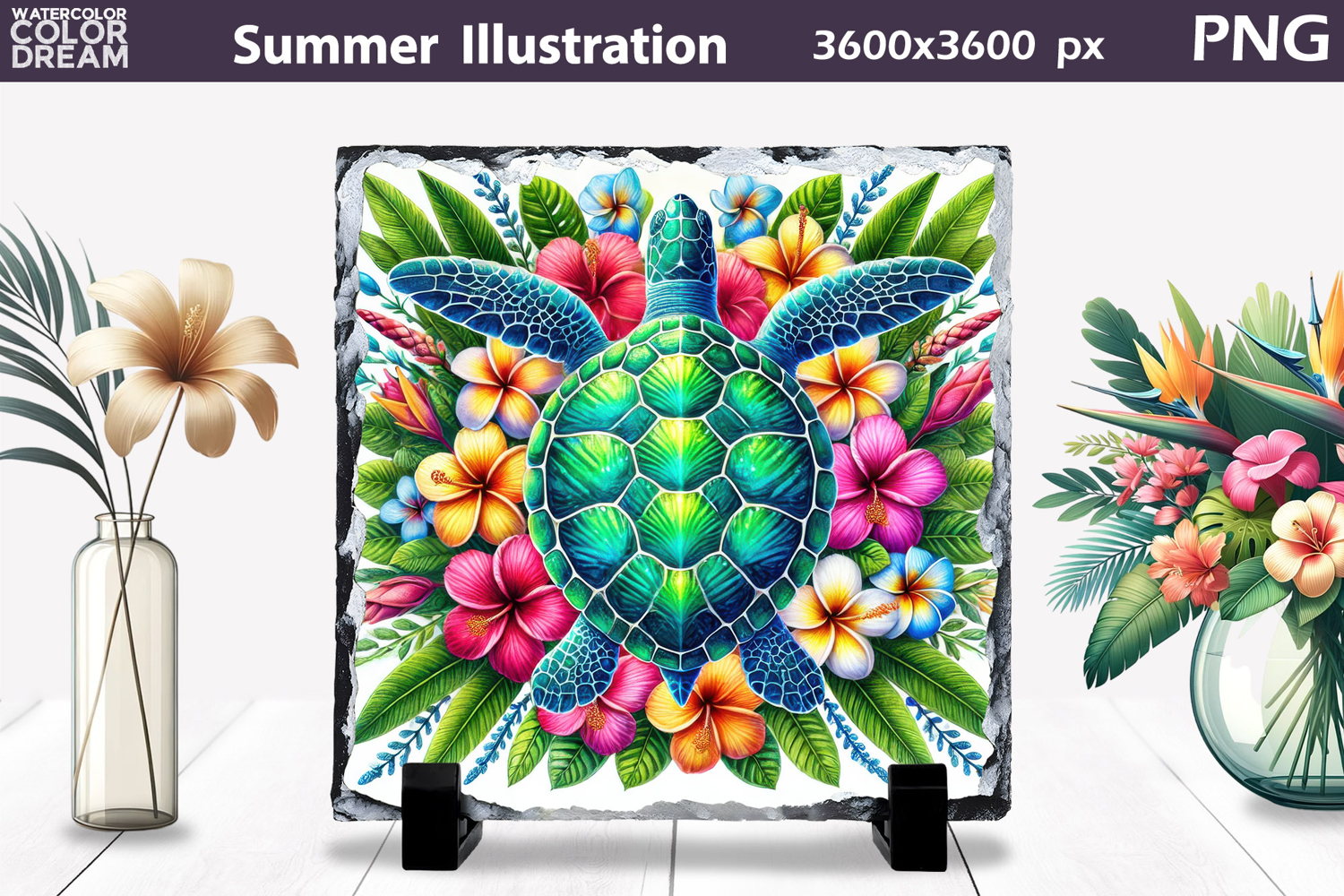 Slate Pillow Poster Card Puzzle Tropical Sea Turtle Floral Illustration Hibiscus Plumeria Turtle Sublimation Design Colorful Ocean Animal Summer Artwork Island Botanical Marine Life Graphic Vibrant Beach Wildlife Print Design Turquoise Green Shell Tropical Art Coastal Paradise Turtle Flower Composition Exotic Summer Turtle Clipart Graphic Hawaiian Inspired Ocean Animal Design