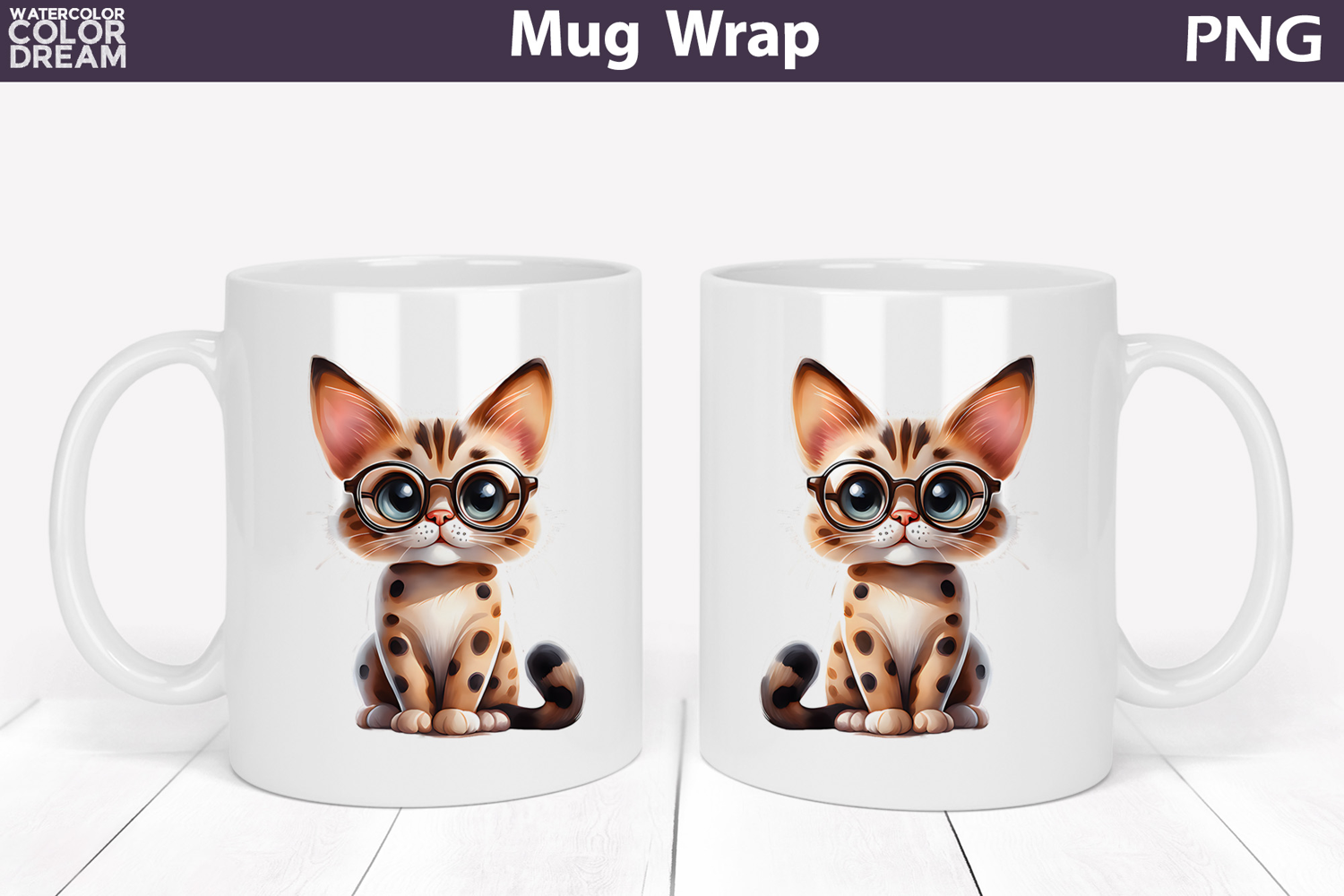 Cute Cat Mug Wrap PNG | Glasses Kitten Sublimation