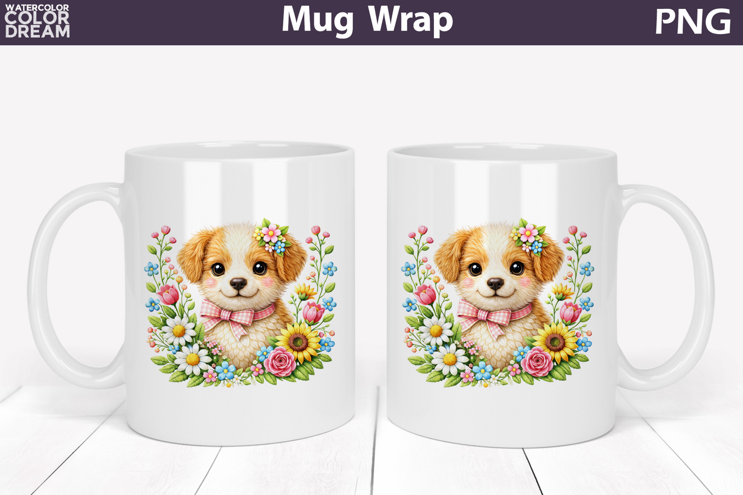 Dog Floral Mug Wrap | Spring Animal Mug Sublimation