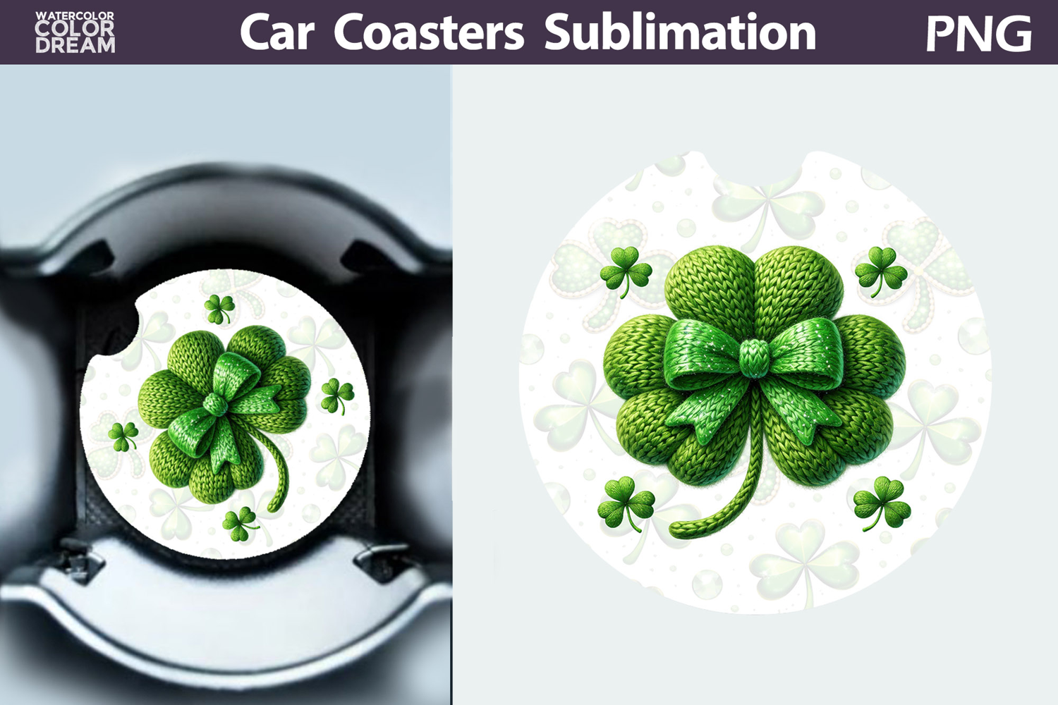 Knitted Shamrock Car Coaster PNG | Lucky Clover Sublimation example image 1