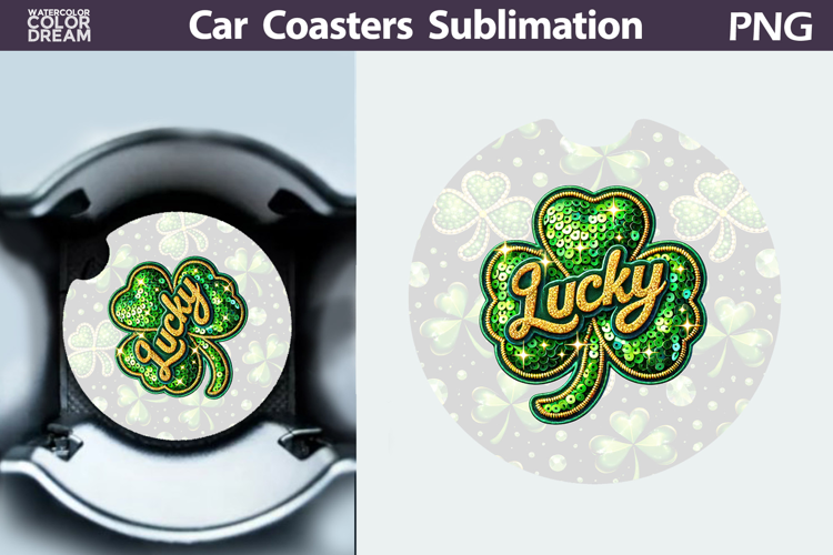 Similar Design Products to Lucky Sequin Shamrock Car Coaster PNG | Irish Sublimation