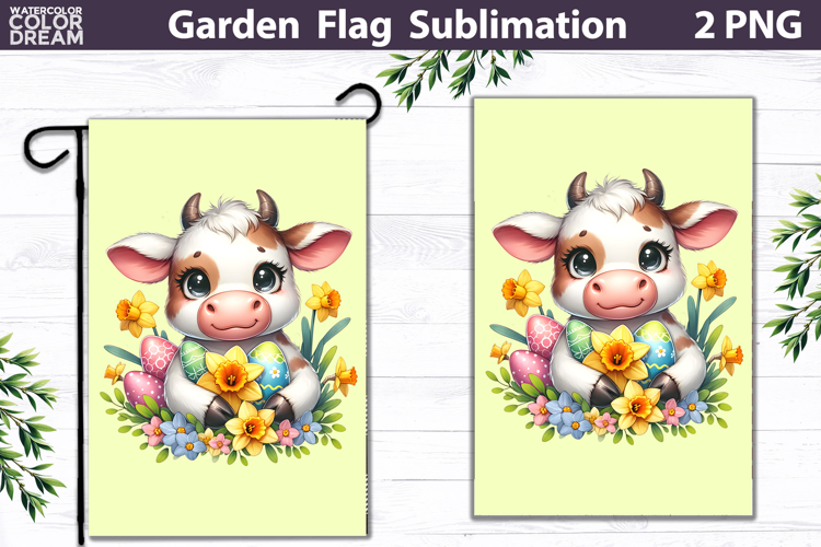 Easter Cow Garden Flag | Spring Egg Sublimation example image 1